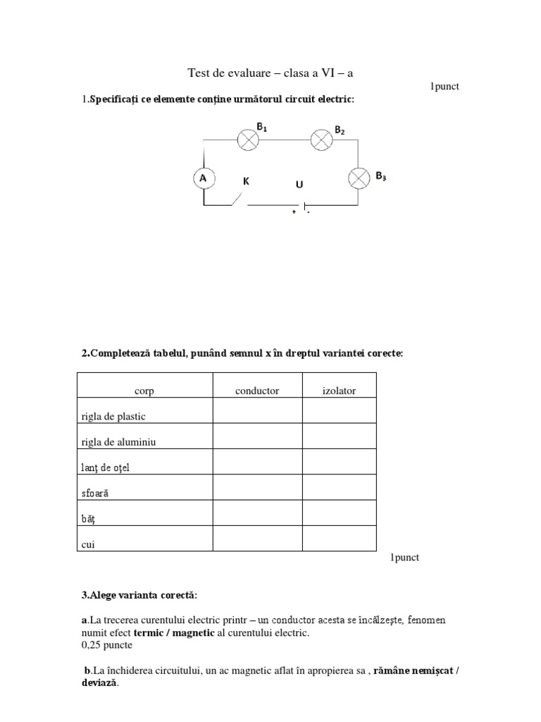 Test Curent Electric Clasa A Vi A