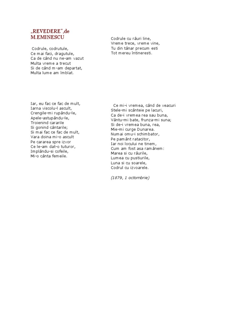 Ma Poate Ajuta Cineva Cu Expresii Frumoase Din Revedere De Mihai Eminescu Brainly Ro