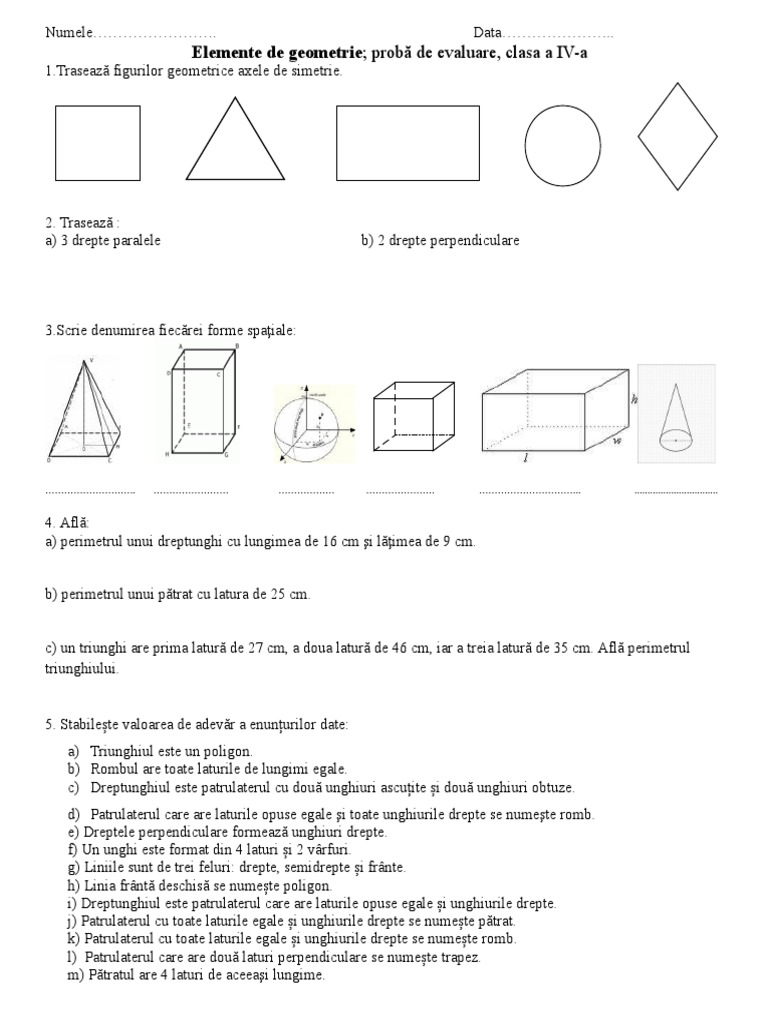 Elemente Fundamentale De Geometrie Interactive Worksheet