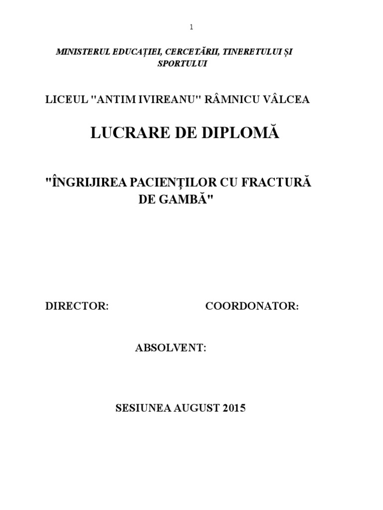 Licenta Ingrijirea Pac Cu Fractura De Gamba