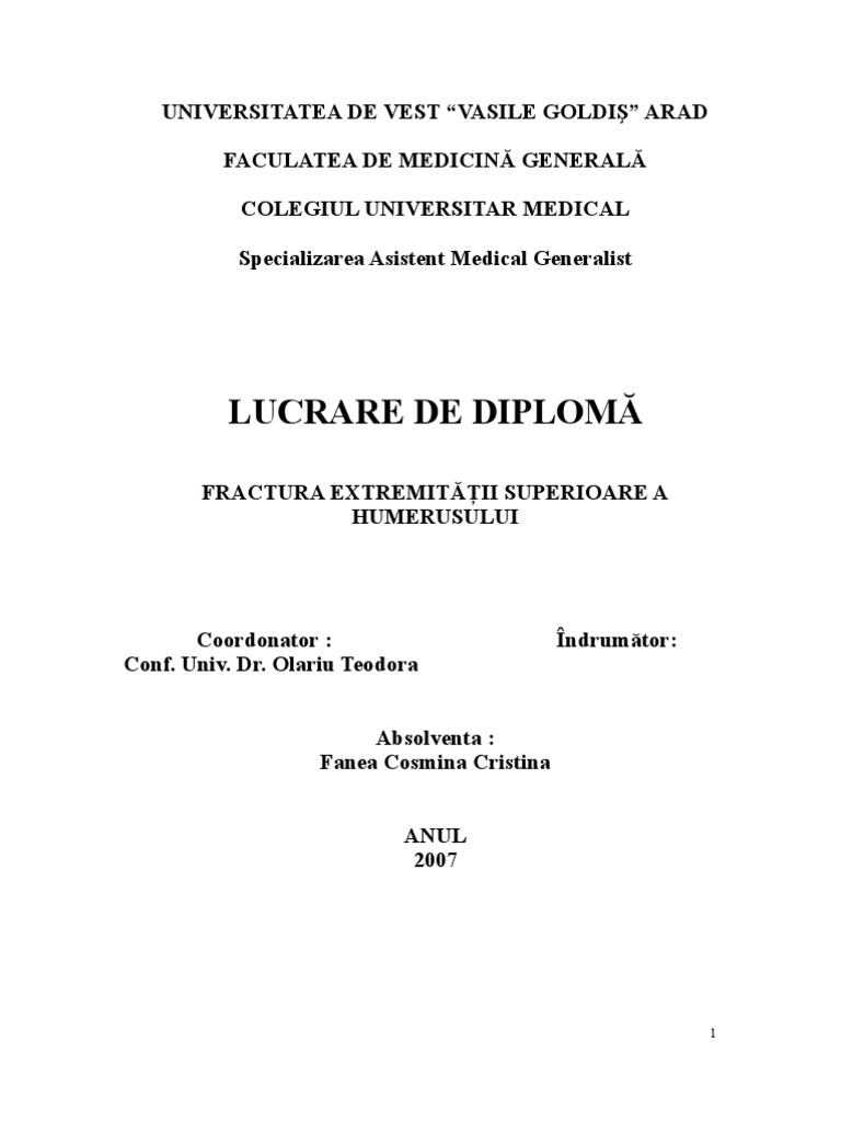 Fractura De Humerus Lucrare De Licenta