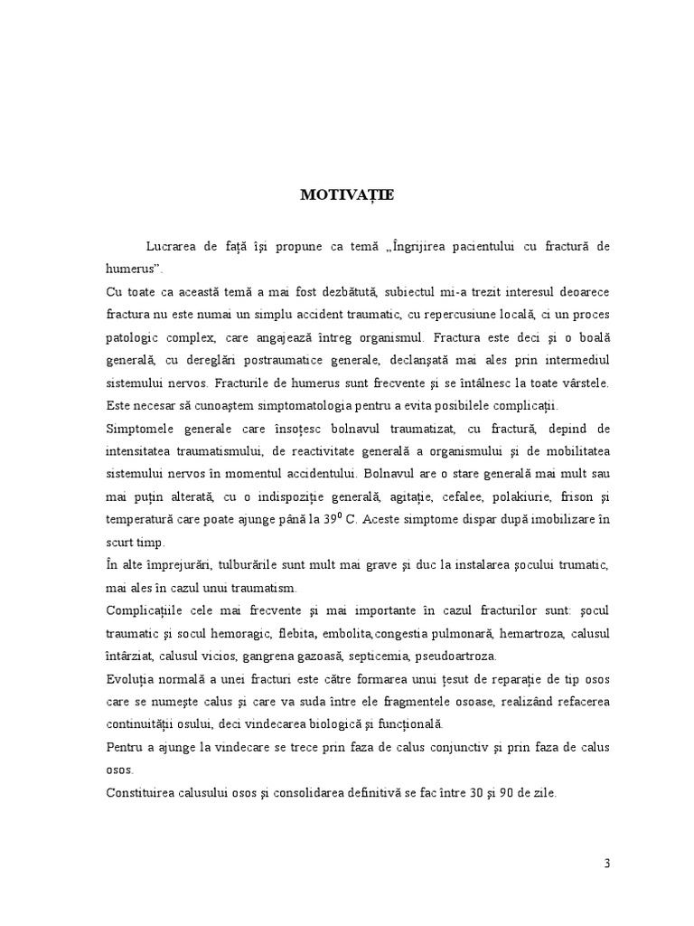 Ingrijirea Pacientilor Cu Fractura Diafizara De Humerus Redactare Licente