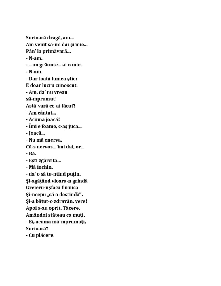 Greierele Si Furnica De Marin Sorescu Machete Didactice