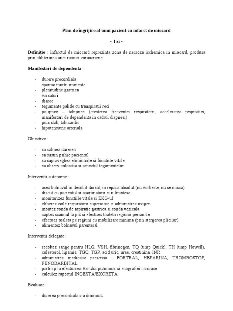 Plan De Ingrijire Al Unui Pacient Cu Infarct De Miocard Doc