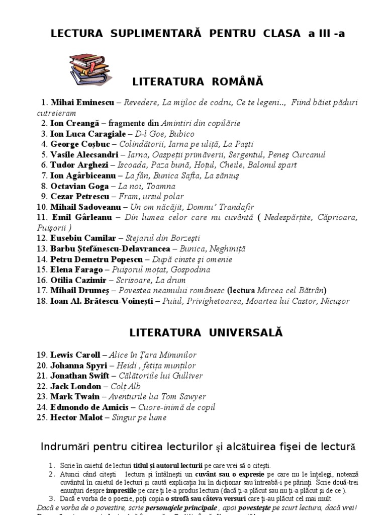 Lista Lecturi Suplimentare Cls Ii Viii
