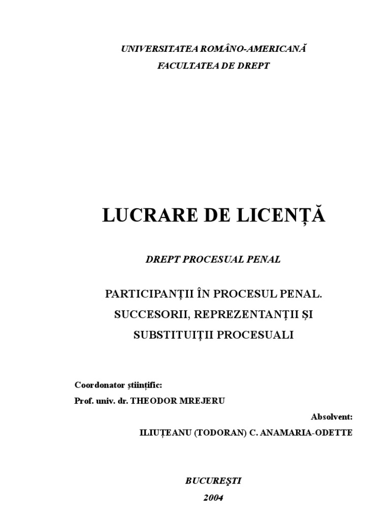 Lucrare De Licenta Drept Participantii In Procesul Penal