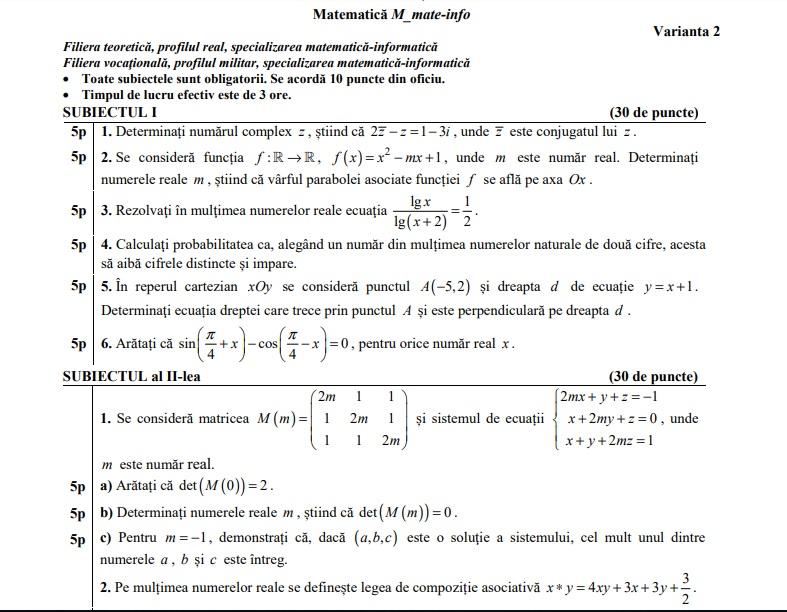 Bac 2018 Matematica 22 08 2018 Subiecte Si Bareme Edu Mate Info M1 Stiinte M2 Tehnologic M2 Pedagogic Sesiunea August Septembrie Jitaruionelblog Pregatire Bac Si Evaluarea Nationala 2020 La Matematica Si Alte Materii Materiale