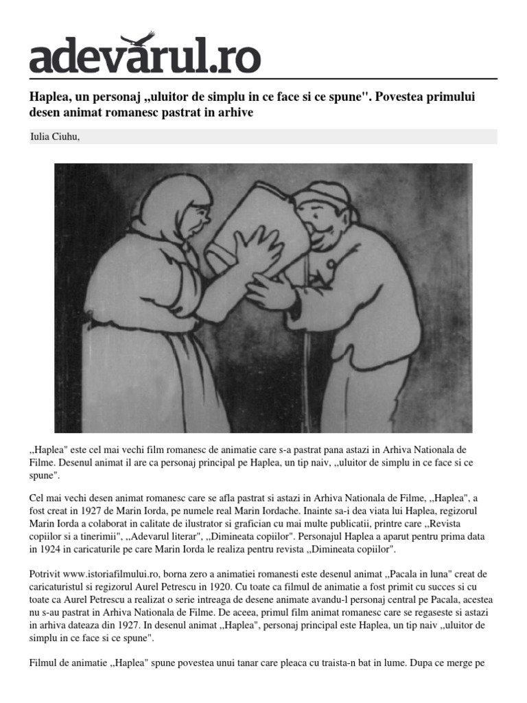 Locale Iasi Haplea Personaj Uluitor Simplu Spune Povestea Primului Desen Animat Romanesc Pastrat Arhive 1 57b9b25a5ab6550cb8f50558 Index