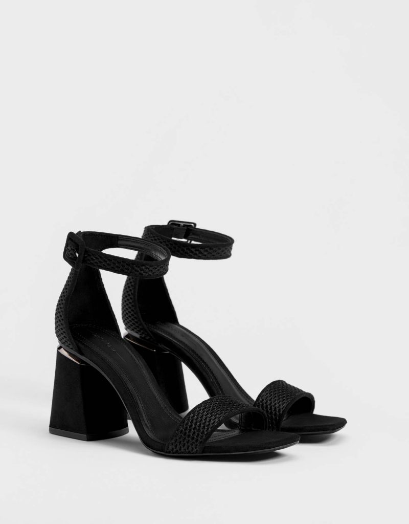 Sandale Negre Cu Toc Gros Si Barete Subtiri Pe Glezna