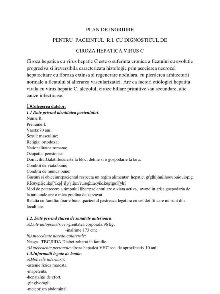 Plan De Ingrijire Ciroza Hepatica Virus C