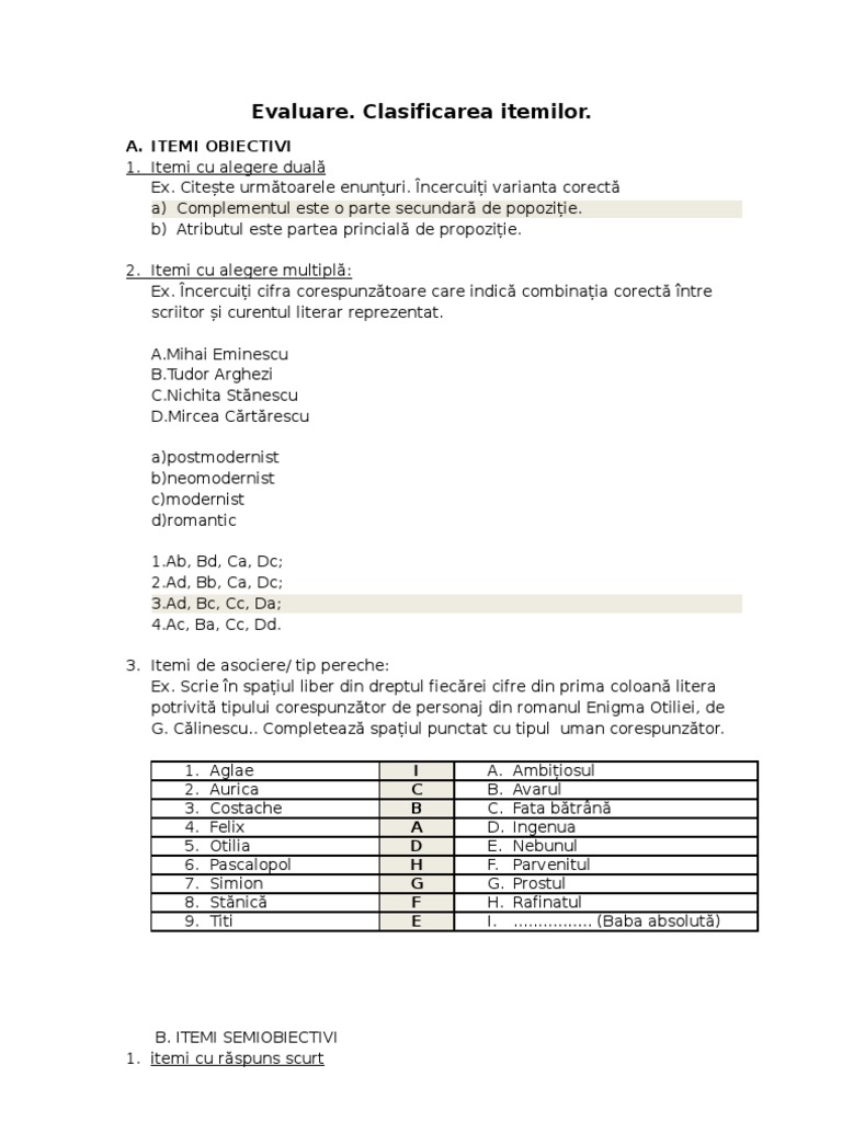 Test De Evaluare Cu Itemi