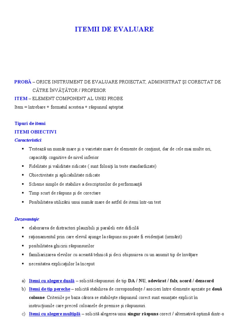 Itemi De Evaluare