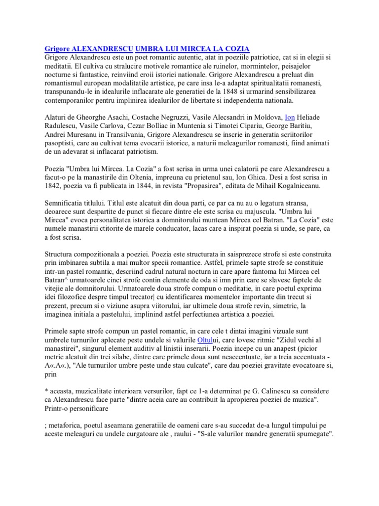 Comentariu Umbra Lui Mircea La Cozia Grigore Alexandrescu 166379 Graduo